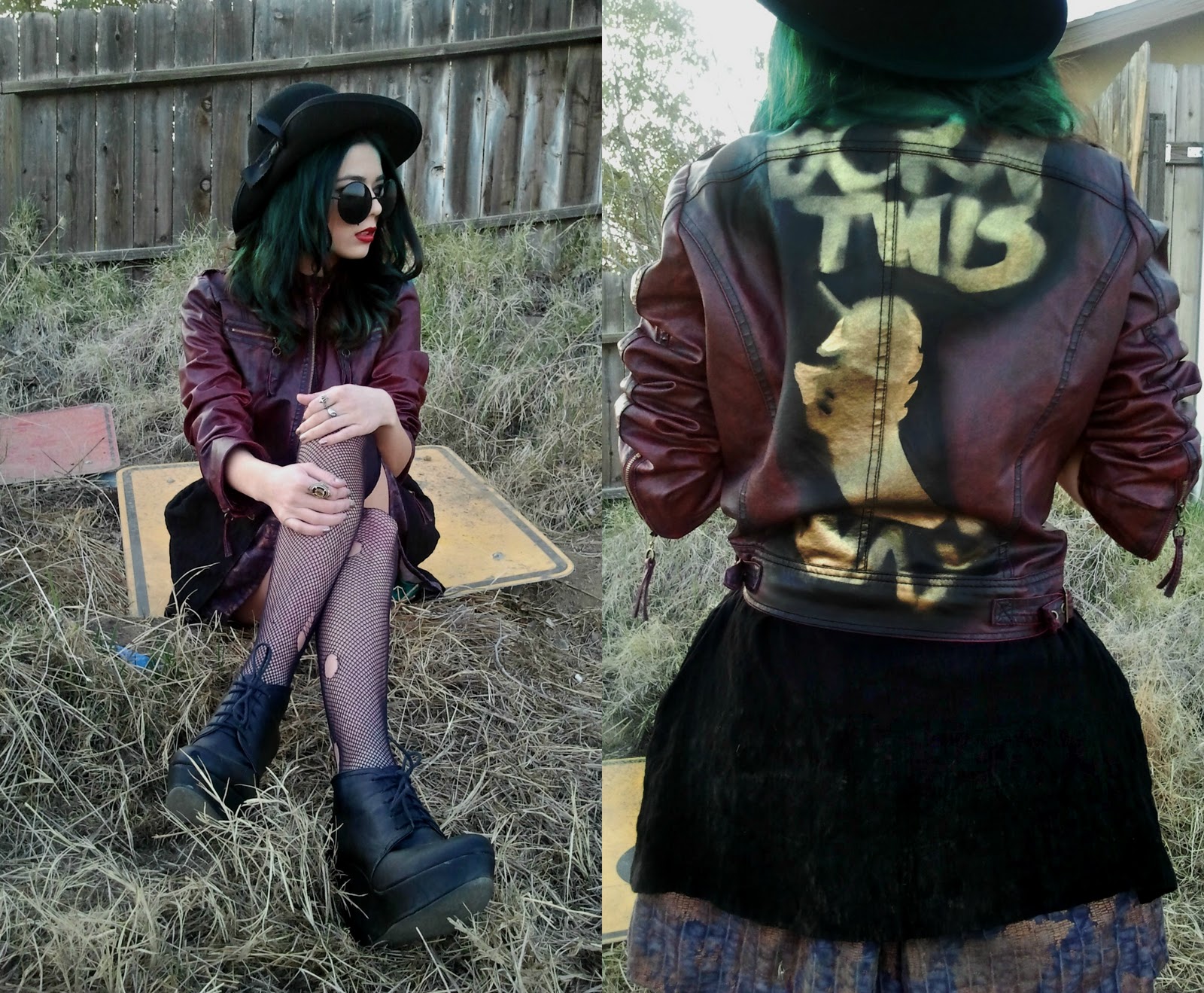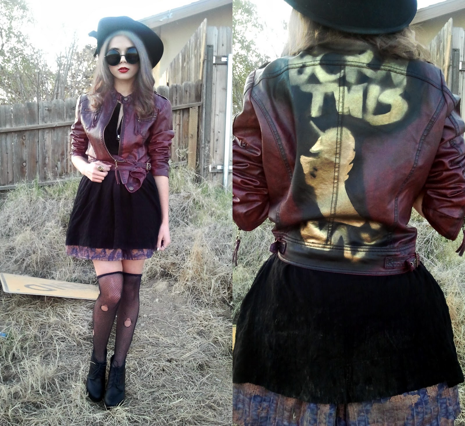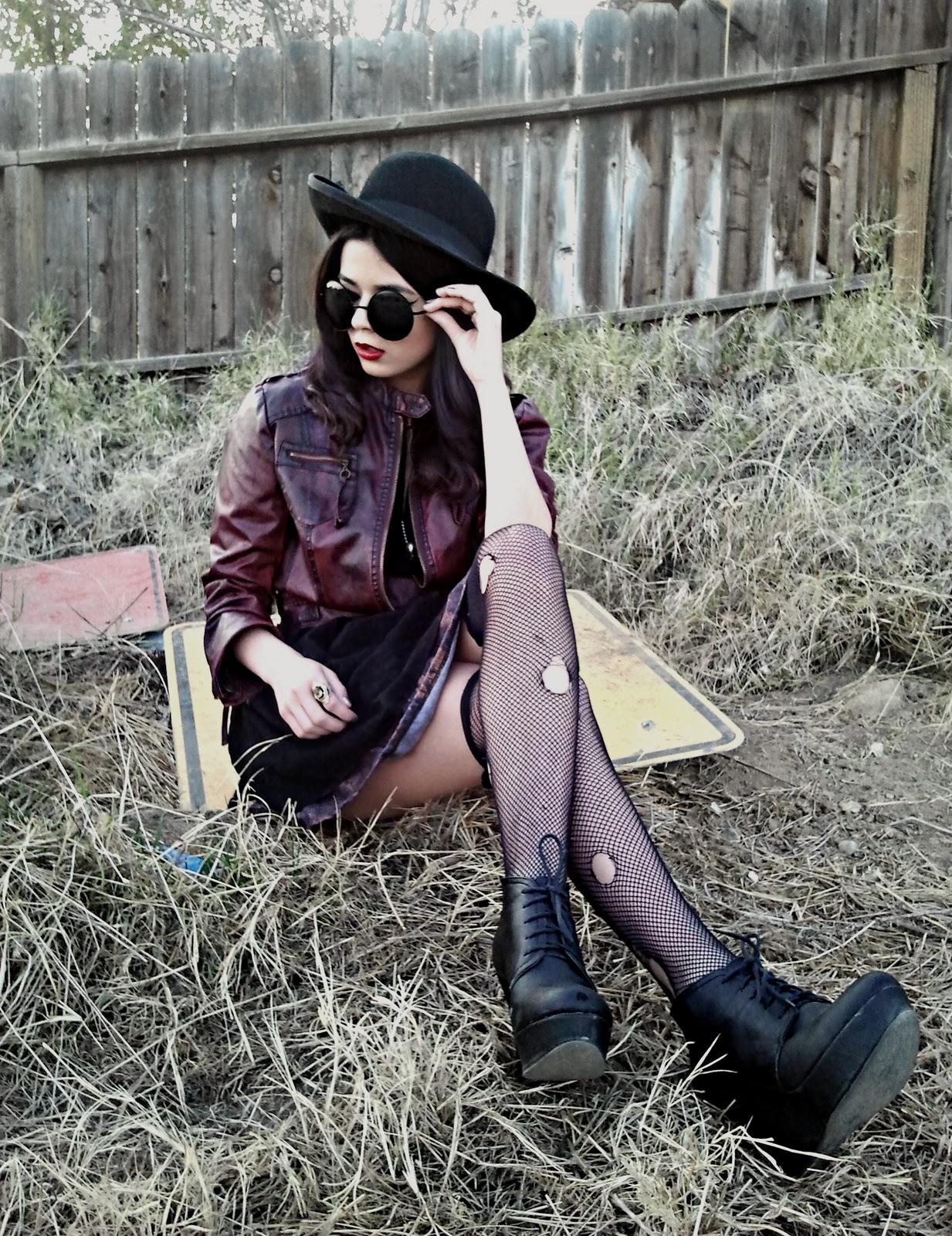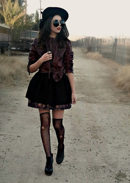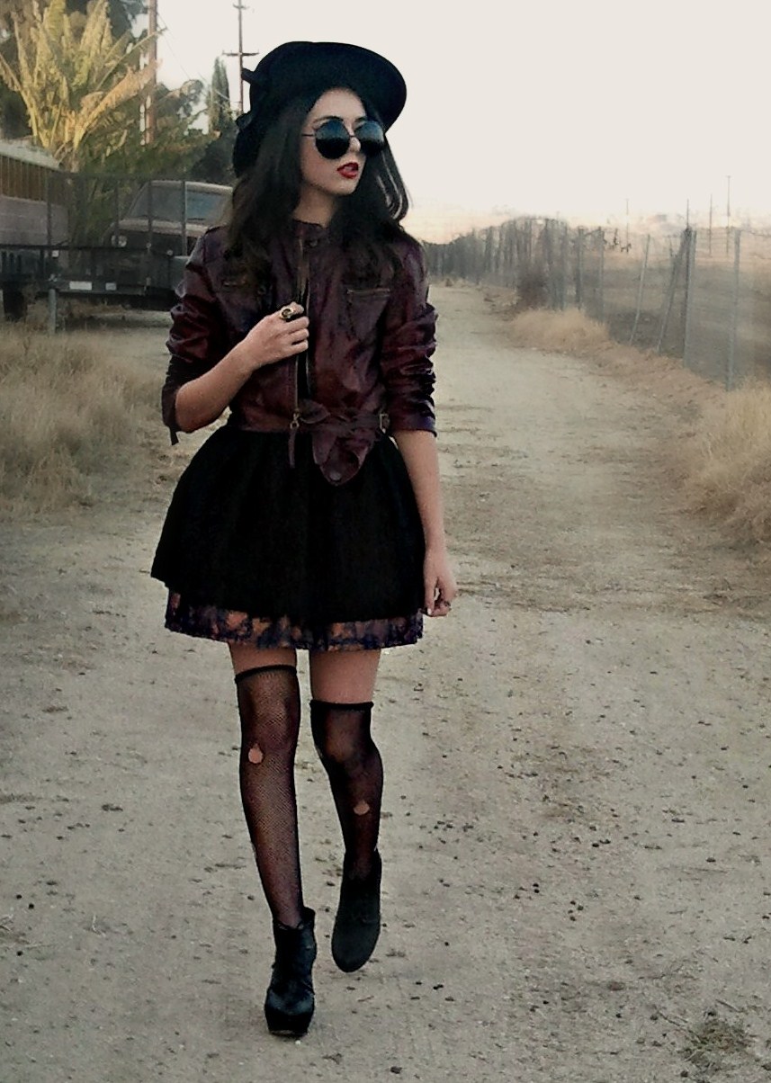 The dress and skirts and shoes are from F21 and the jacket was thrifted along with the hat, and the socks diy.