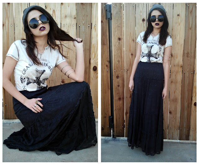 So, this is the t-shirt that Burn&Crash Apparel gave me as a holiday gift! I am so happy with the quality and look, it is very soft and super comfy for a day when you want to look edgy but relaxed. I really really enjoy the rocker pattern on it and cross. Crosses and skulls are just so hot right now, which I’m fine with haha!