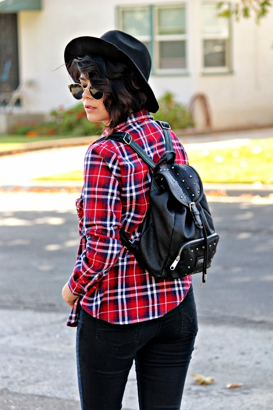 How are you guys? Sorry I’ve really been MIA these past few months. I recently got a job and it’s really been taking up all of my time. I’m working at a pizzeria as a deliverer, but quitting soon! Hopefully I’ll get a job at this really cute vintage thrift store downtown with my friend, then I’ll actually be able to wear cute outfits everyday! Oh the joy! But, really, working at this pizza job has made it where it’s virtually impossible for me to dress up anymore because I have to just kick it in jeans, t-shirt, and flat shoes all the time. But, if I’m planning to go out after work I’ve learned ways to spruce up my work outfit like with this cute flannel, hat, jewelry, and boots (: Also, you guys seriously need to stop into a PINK store sometime in your mall, they have the CUTEST backpacks right now. All different sorts. I bought this one a few weeks ago and have been using it as my new purse, it’s just so cute and little! The only disadvantage is that while you’re shopping a lot of employees look at you extra hard when you’re wearing a backpack because they think you’re going to steal something, haha!