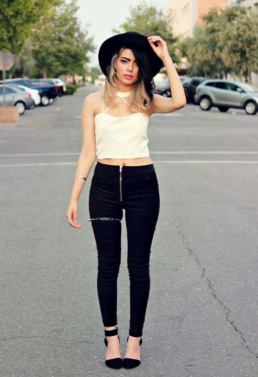 About the outfit itself, I wanted to look sophisticated but also very youthful. I made the outfit versatile enough that I could wear it to go shopping or hangout downtown at a coffee shop, and if I happened to want to go to a concert, I could just slap on my ripped denim jacket for more of a casual edgy feel.
