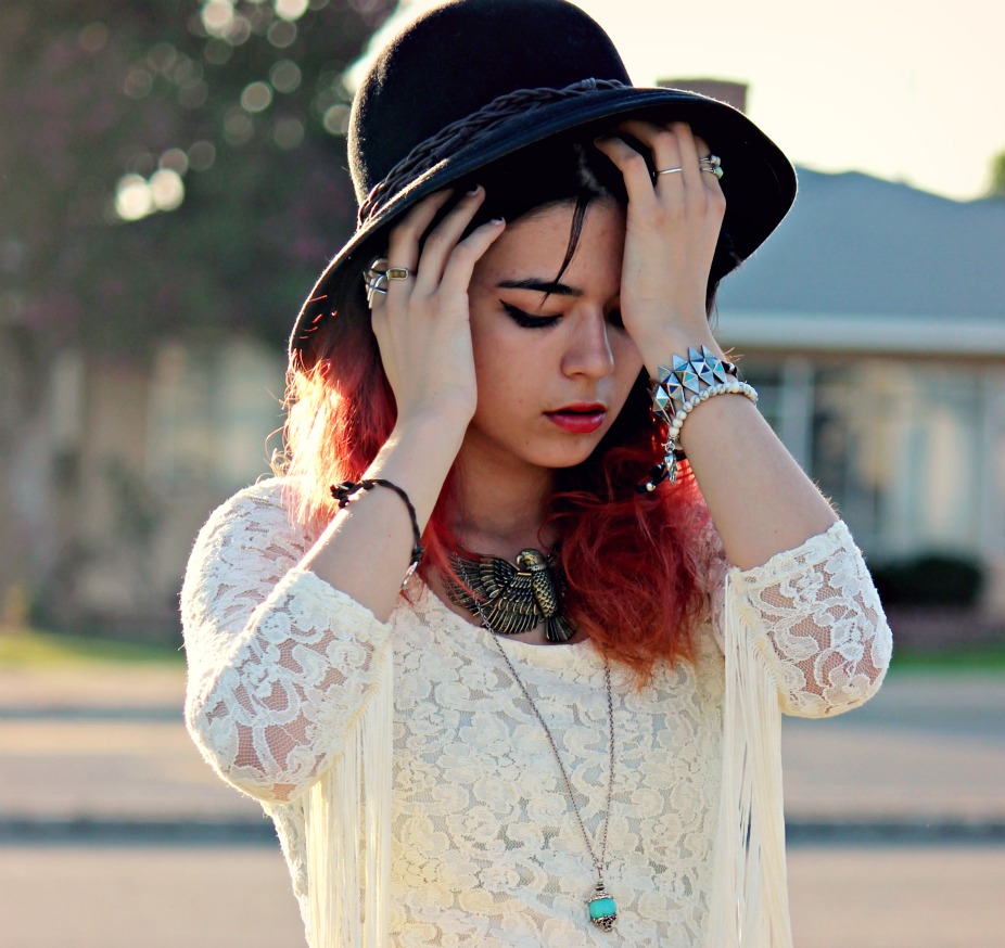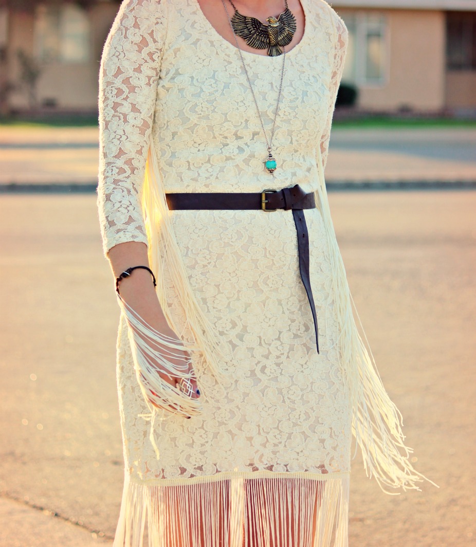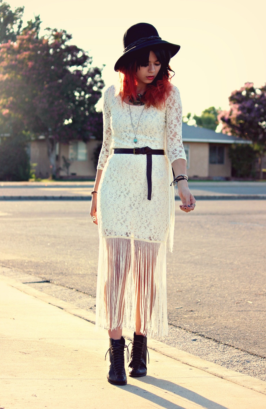 I would say today’s outfit is a really typical look for me, boho with a big hat! I tried to keep the white dress fresh looking but added a little edge with dark brown accessories and turquoise jewelry. I’m really digging the fringe on this dress! There is just… so much of it! You can never ever have too much fringe. These boots were sent to me as a surprise from Yeswalker! I’ve never really had a company send me something purely of their choice so I was a bit nervous, but they did a great job picking these out. I definitely like them, although they’re something I would have never picked for myself, they’re something I plan on wearing a lot this fall.
