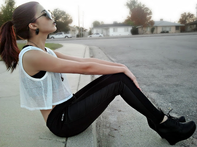 My mom has this old mesh tank top from the 80’s that I never knew what do with! Today, after so many years of staring at it I decided to pair it with a sports bra and leather pants! Turned out great π I think that pairing a mesh shirt like this with other different colored sports bras could also be a very fun look! And pretty great during summer with some tribal patterned shorts or leggingsβ₯