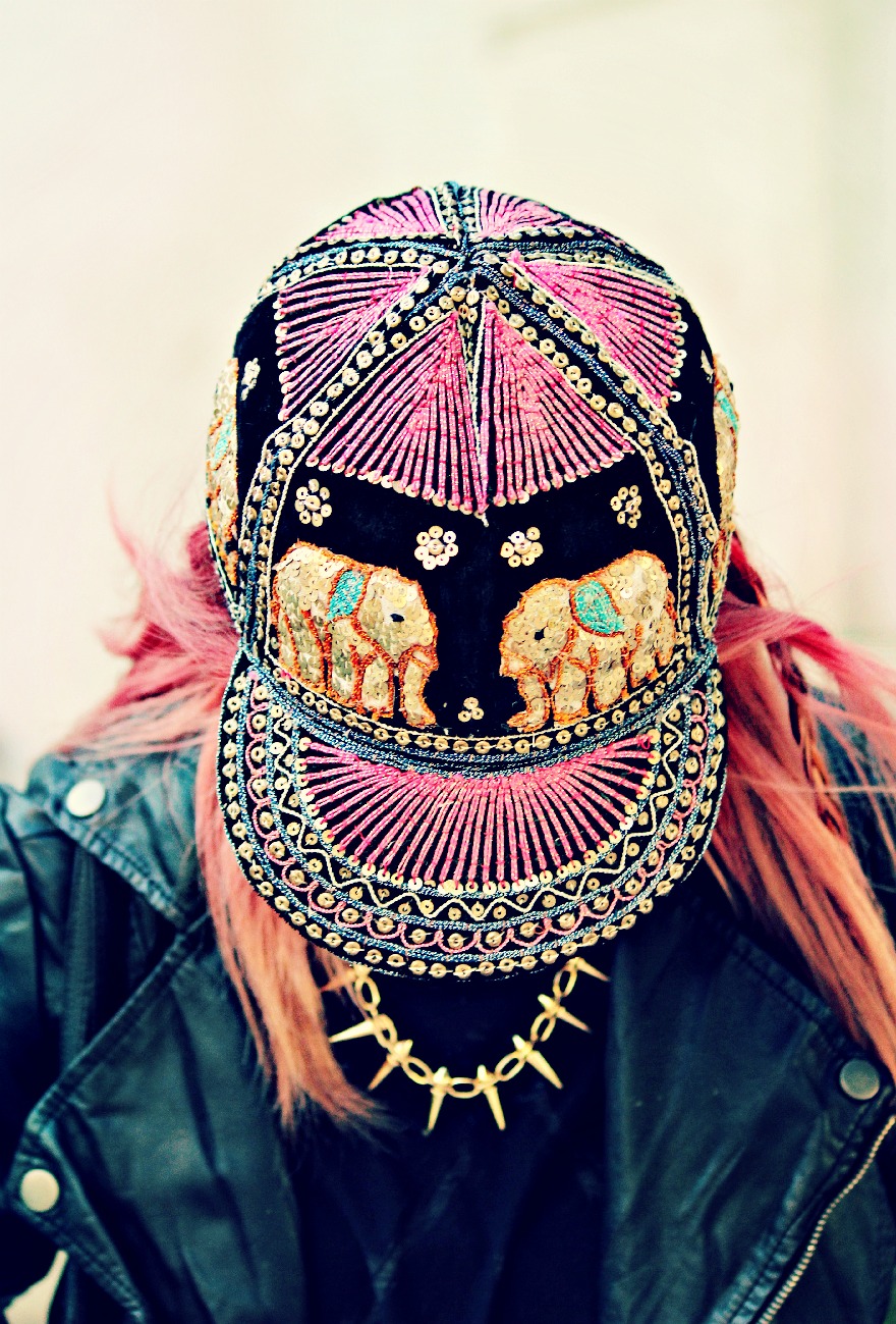 An outfit I wore to walk around downtown with my friend, pretty simple and nice. All black! Gold touches! And a rad, amazing hat to spice it all up!!! My friend’s grandma actually got it on a trip to India, she didn’t know what to do with it so she gifted it to me. I really love it since I’m enjoying the color combination of aqua and pink, plus I’ve always loved gold vs. silver.