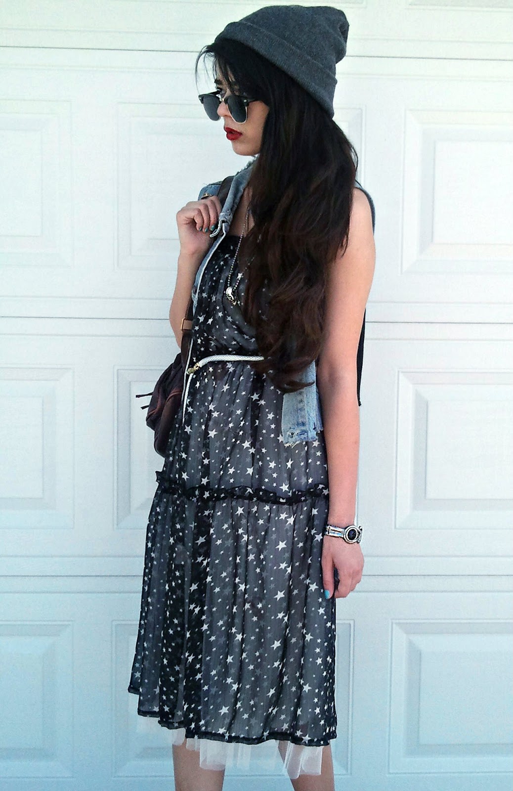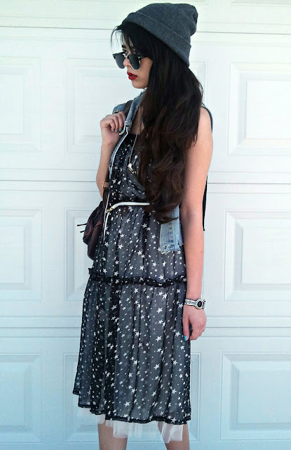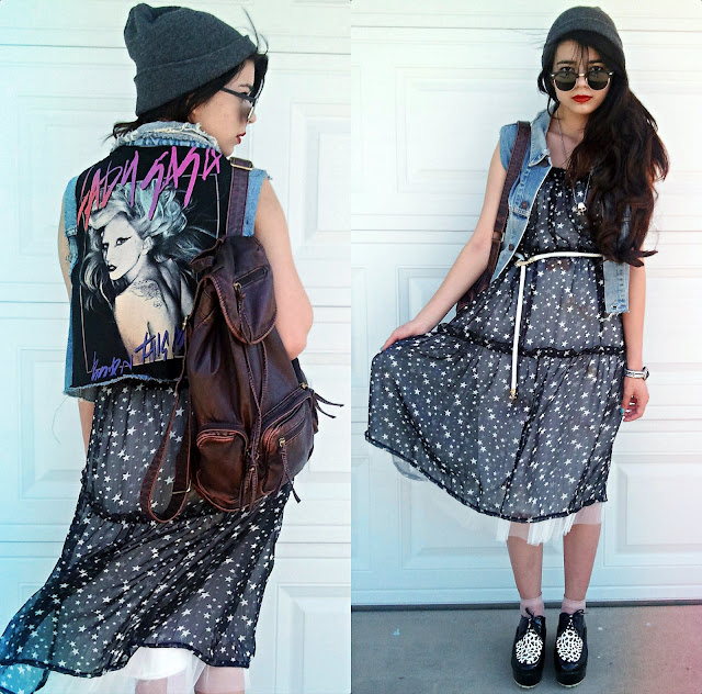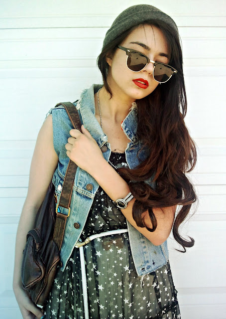 | Dress-http://romwe.com Bracelet&Snake Belt- Thrifted Diy Vest- Levi’s Sunglasses- Old Navy Backpack- Icing’s |
