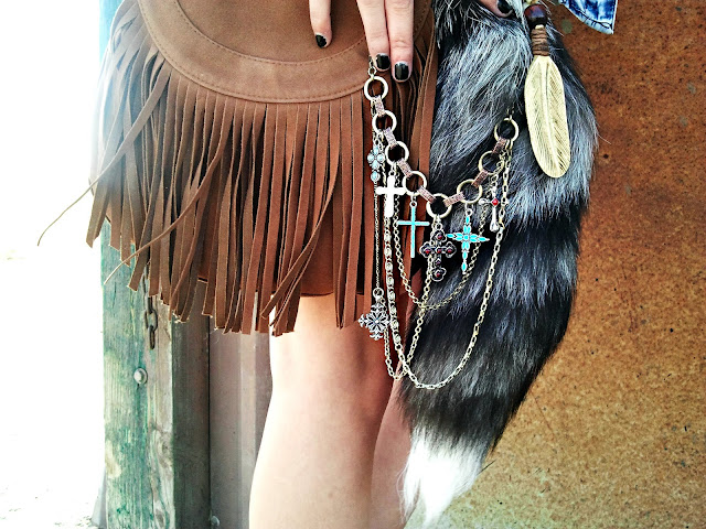 I recently found out about this awesome brand Resilience clothing, it’s directed towards a mail crowd but I couldn’t help buy love the design! I paired this casual band tee from Resilience with my acid washed vest and my distressed crash and burn jacket to get a gritty tough look. The crosses are a necklace but they look so cute hung on this bag!!! The feather is also a necklace too, I just love using necklaces as purse decor :] I was also craving some brown leather sandals for this spring/summer and Target is definitely the place to go right now! They have sooo many cute sandals!!! All so earthy looking too!