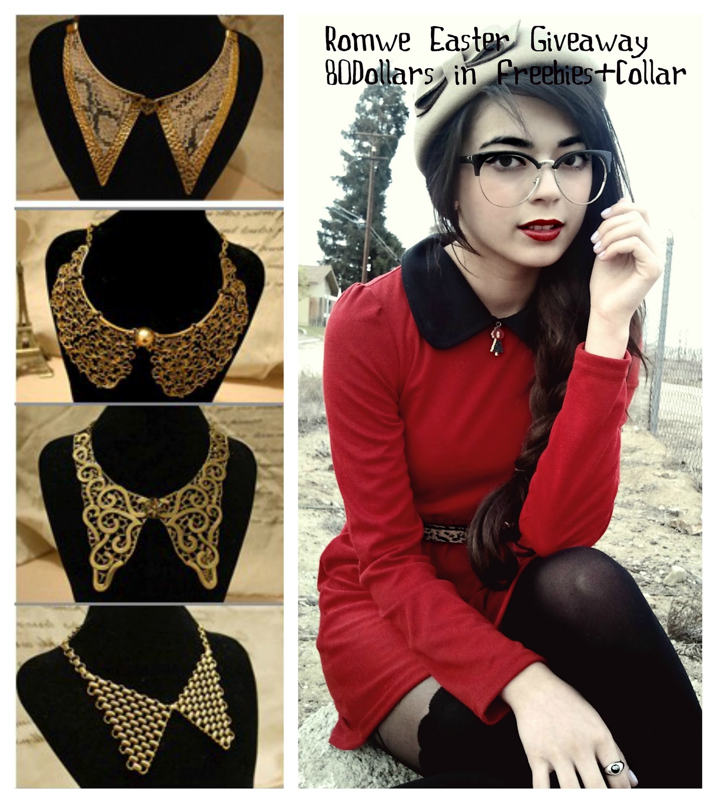 Ever wanted one of these beautiful metal collars!? Now is your chance to win one ALL free 🙂 And a great 80 dollar bonus in freebies!!! I know I recently had a Romwe giveaway but they’re just so nice that they allowed me another to celebrate Easter!