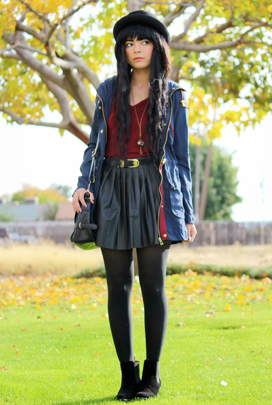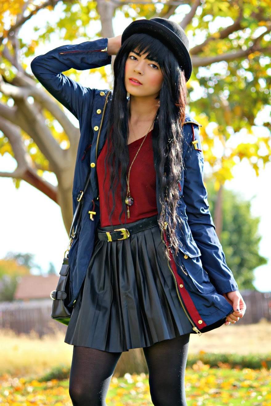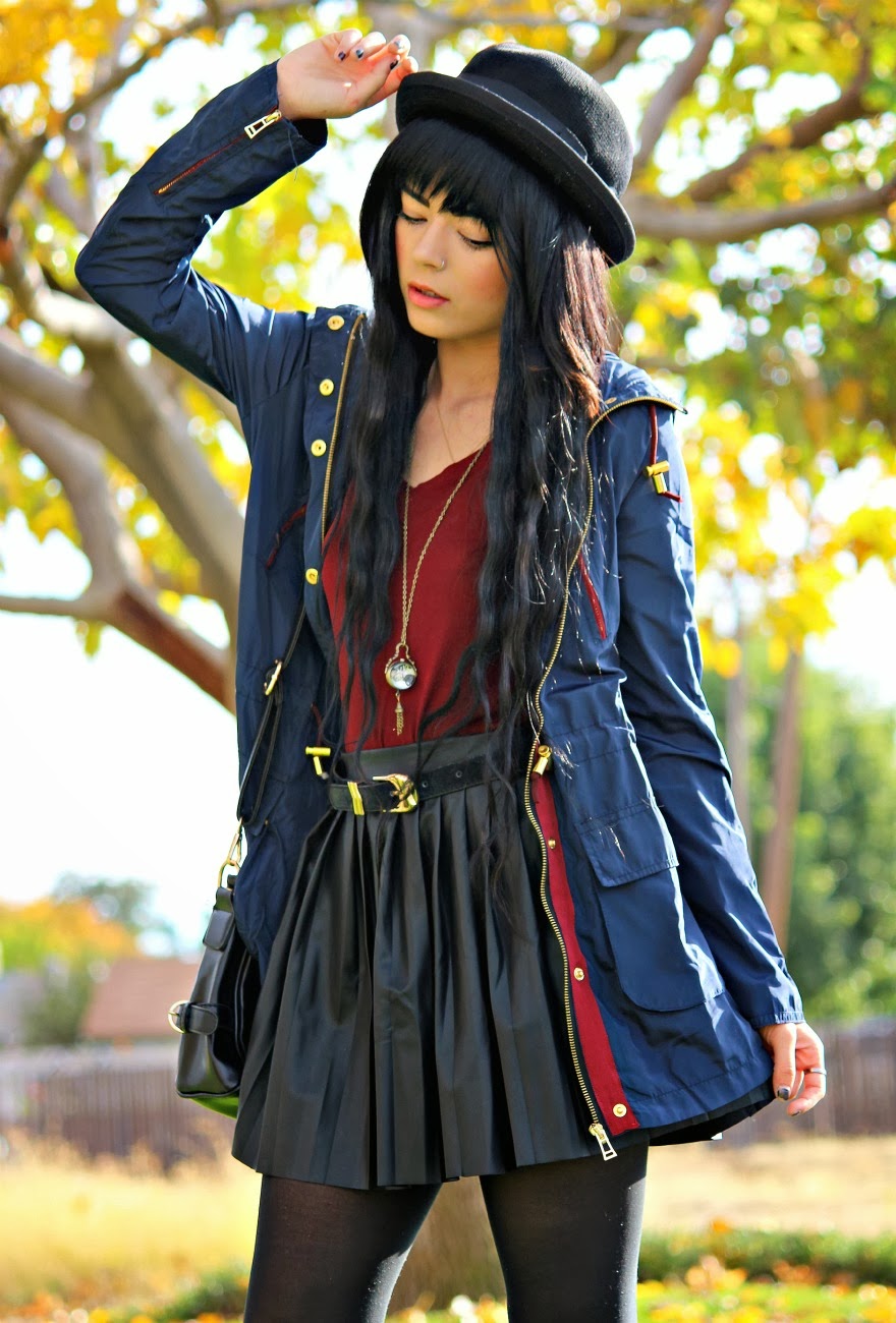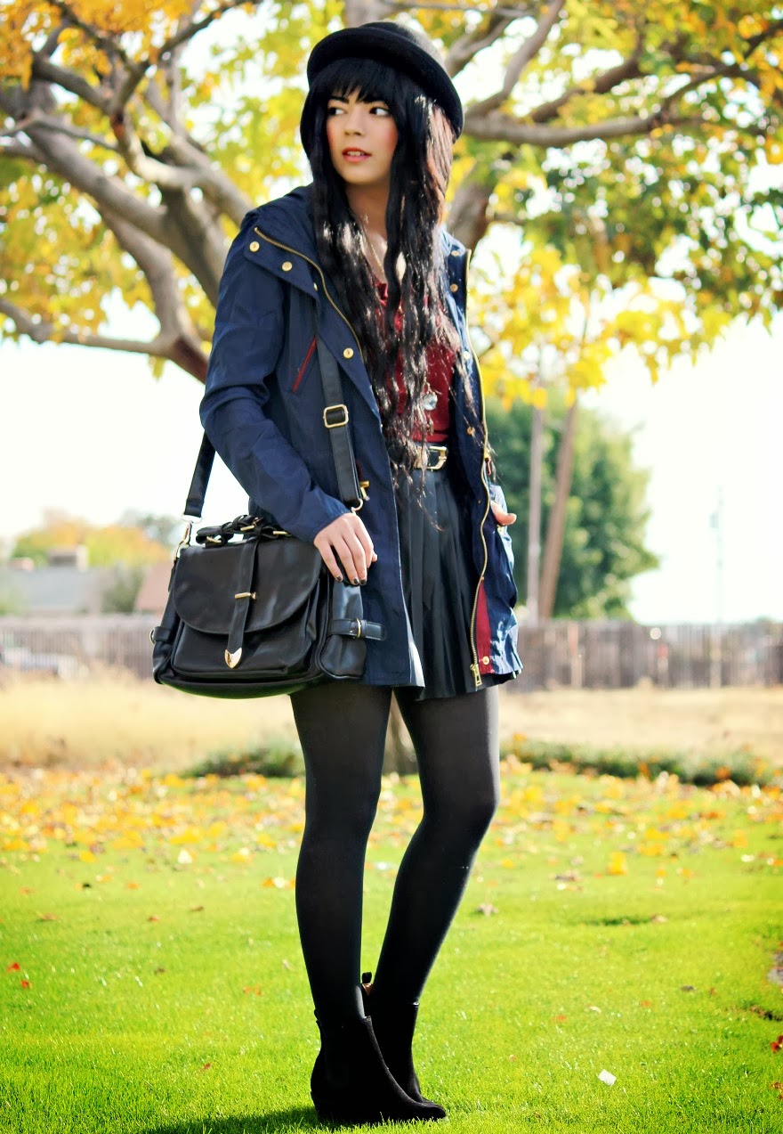 I’ve been very fond of the color Navy this season! It’s such a subtle beautiful way to bring color into an outfit and goes so well with everything! What’s not to love? I focused on playing off of this coat I received from Romwe for this outfit. I thought that it was so beautiful combining gold, burgandy, and navy into one happy mix! How do you guys like this outfit?