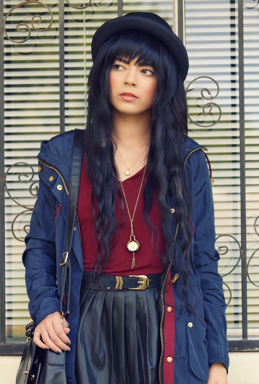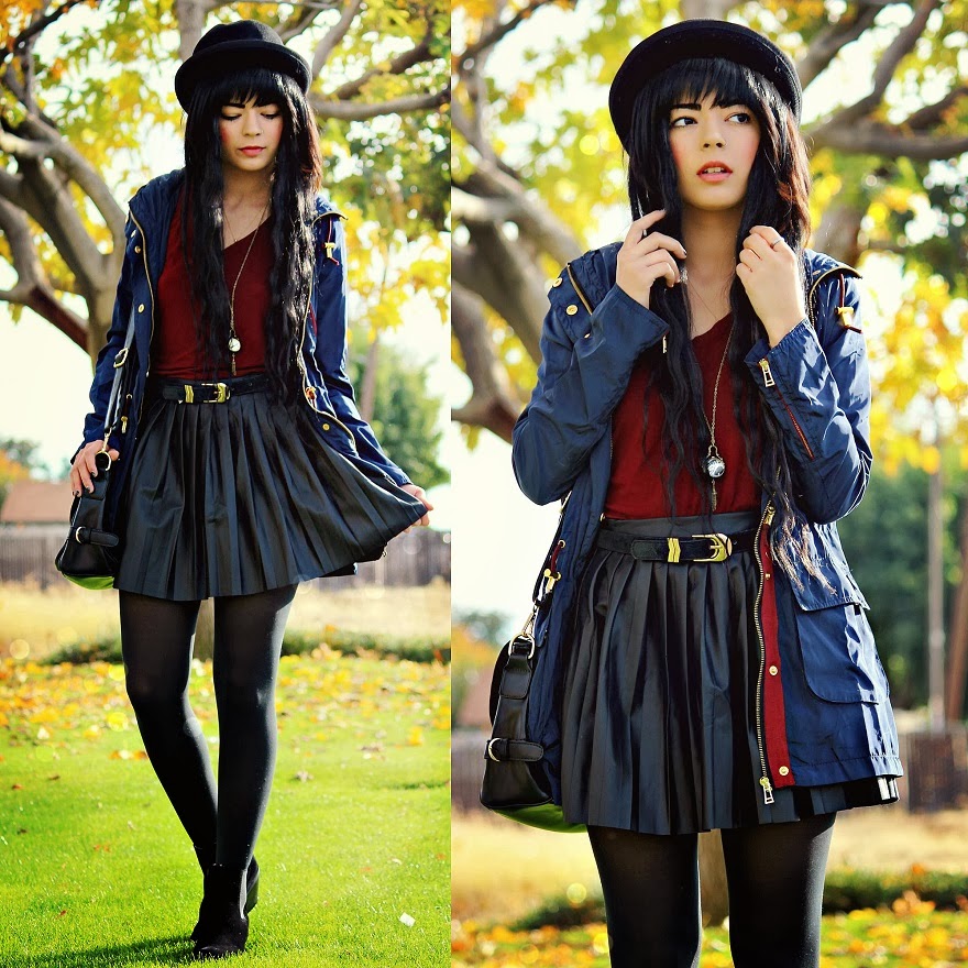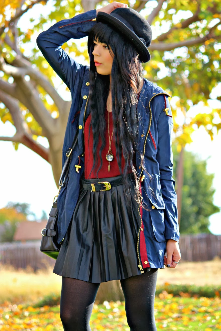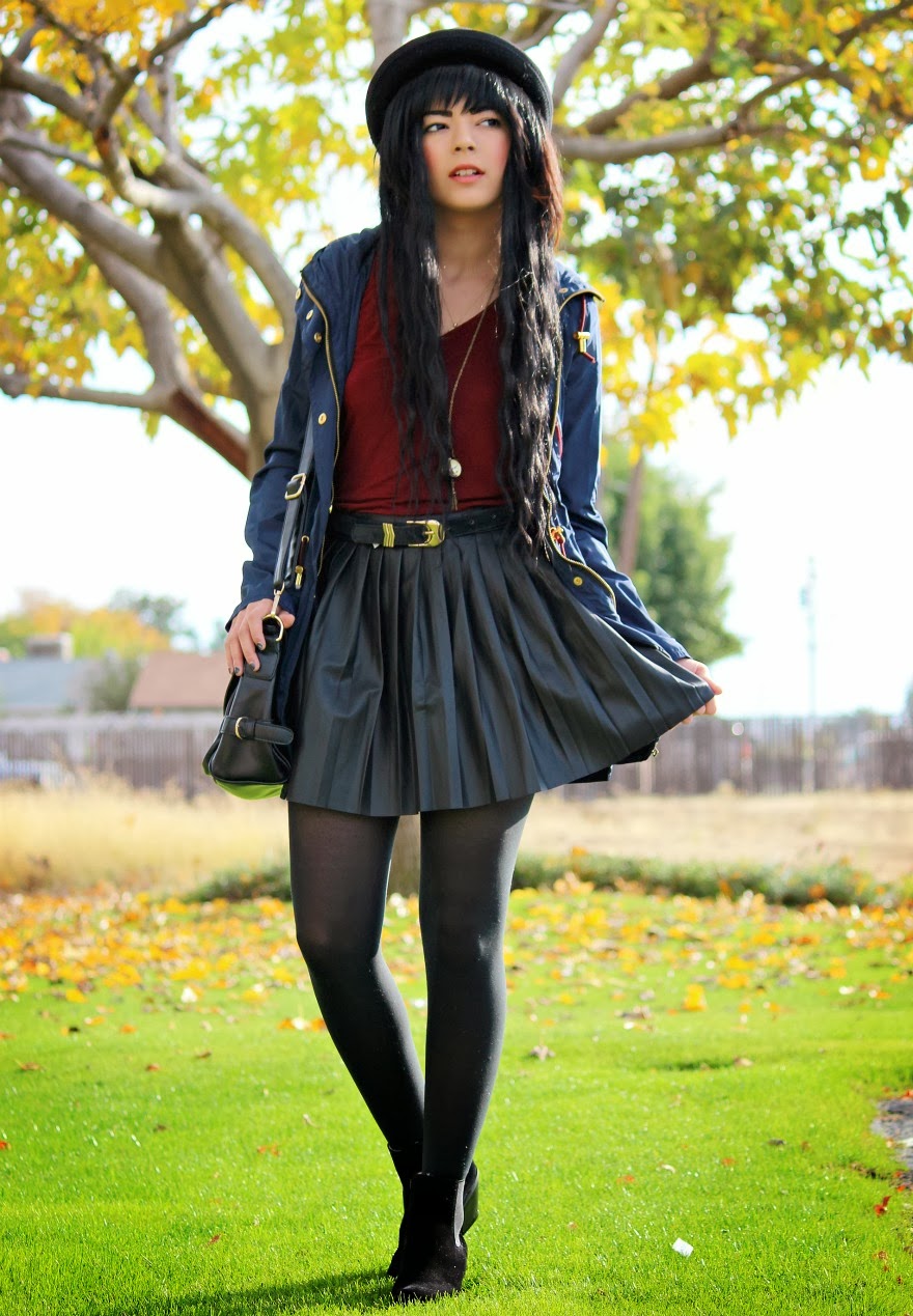 I’ve been very fond of the color Navy this season! It’s such a subtle beautiful way to bring color into an outfit and goes so well with everything! What’s not to love? I focused on playing off of this coat I received from Romwe for this outfit. I thought that it was so beautiful combining gold, burgandy, and navy into one happy mix! How do you guys like this outfit?