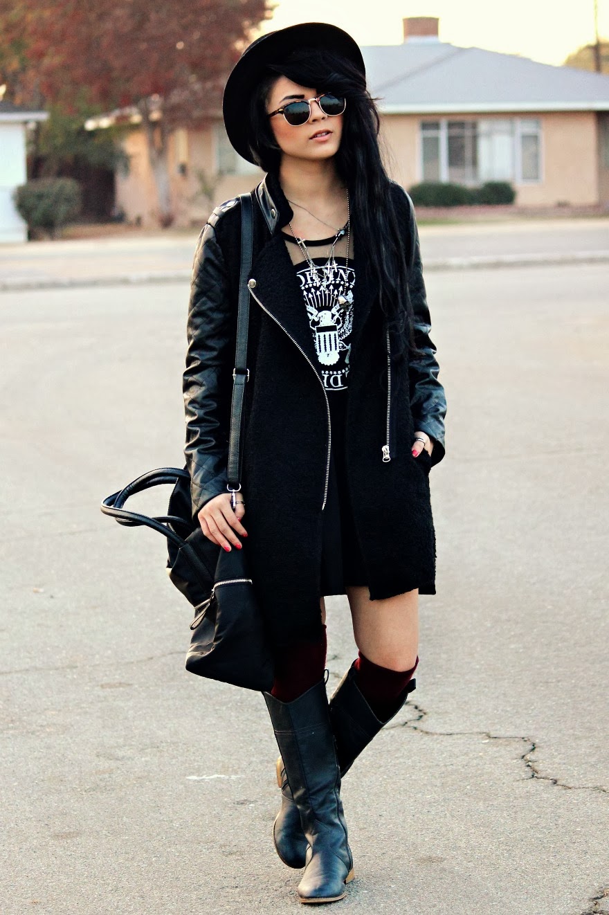 I’m so in love with this new coat Romwe came out with! Like, it’s the perfect length to wear with dresses plus boots and just look absolutely adorable! I paired this coat with a cool Ramones dress, and a slouchy over sized sporty bag, both key items to keeping this looking more cool than feminine. And then I honestly don’t have any great knee high boots, so I just used these old rain boots to give you guys the general idea of what I wanted from this outfit! Haha!