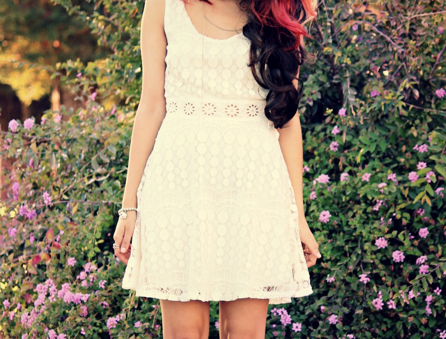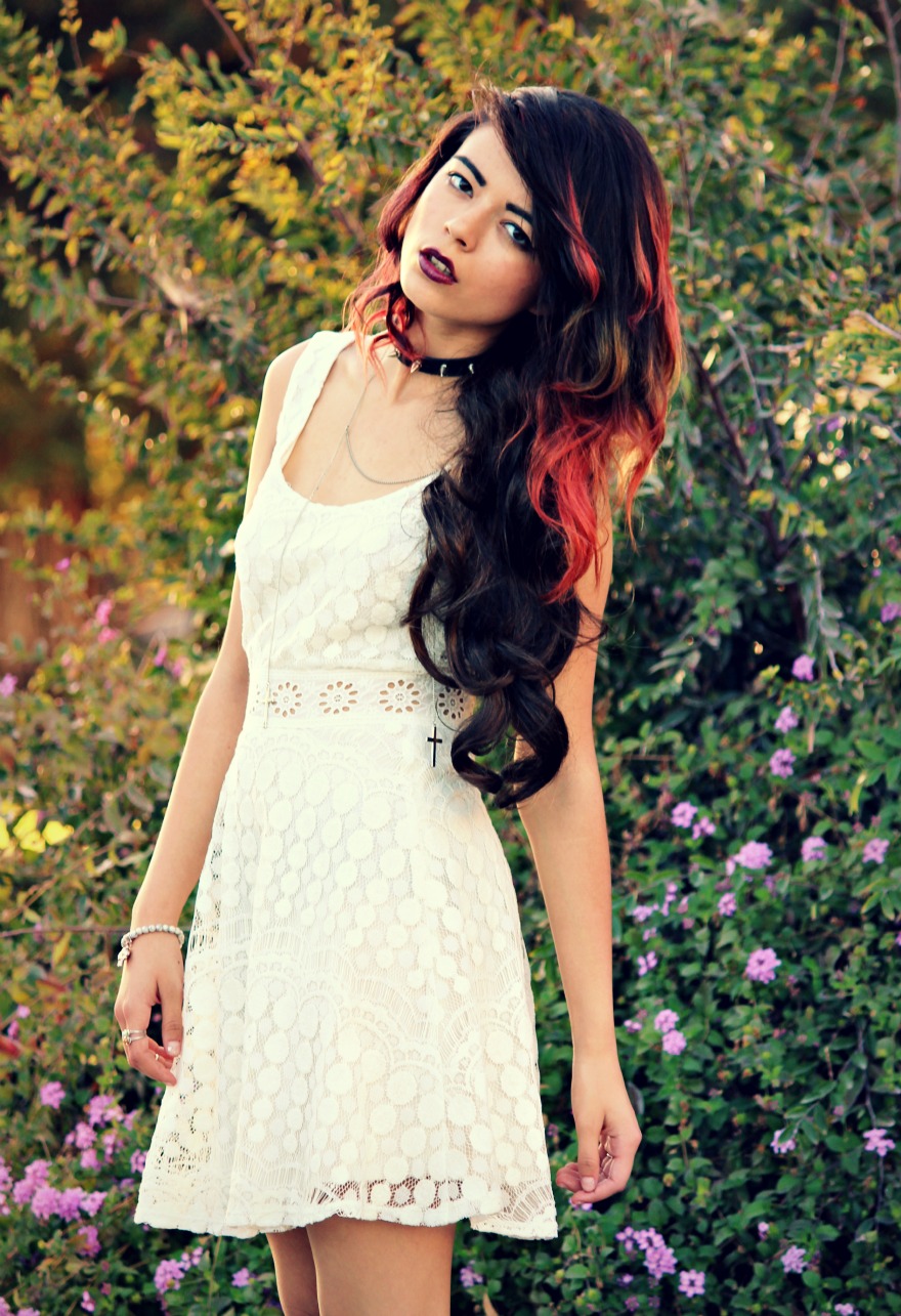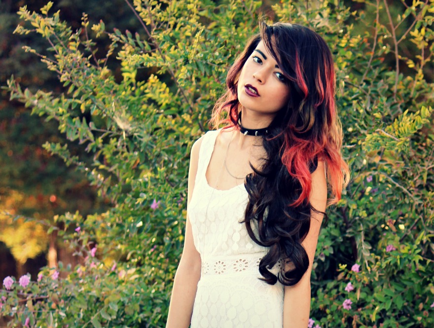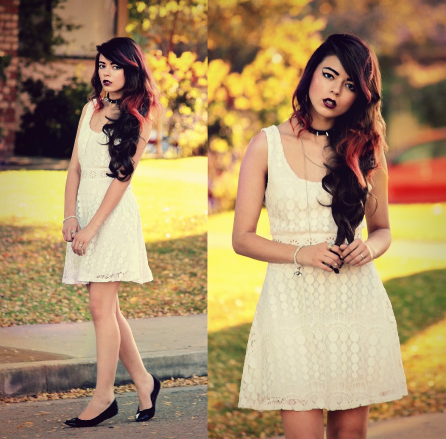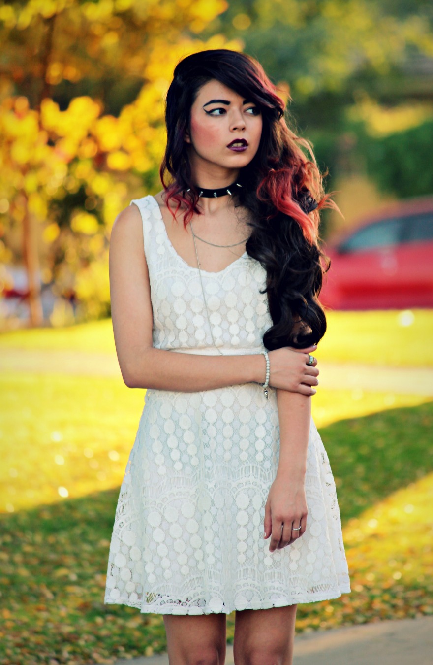 I’ve always LOVED this song by Hellogoodbye. They’re the absolute cutest band ever! I thought I would finally make an outfit inspired by one of my favorite love songs of theirs, When We First Met(The video above). I hope it’s not too strange or off-putting for you guys seeing me far girlier than usual, I tried to tone it down with some black accessories and spikes! Haha. But yes, coincidentally I used this very lovely dress that Wasteland sent me, what’s such a coincidence is that the people who made the video above happens to have the main girl wearing an almost identical dress!!! And in almost an identical park setting!!! It was my first time watching the video this morning before making this post and I was just mind blown! I guess I’m not the only one that feels like white eyelet dresses and flats best capture the cutesy vibe of this song.